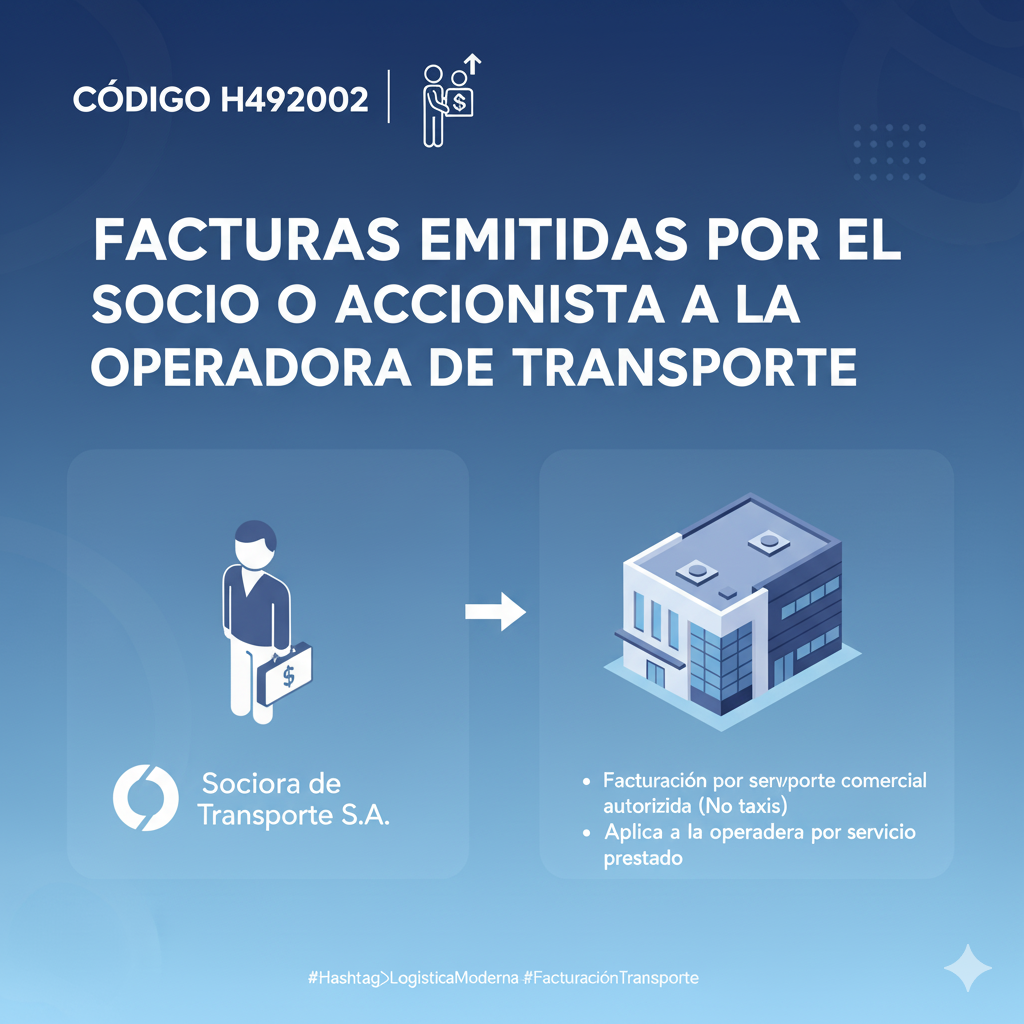 H492002 | Facturas emitidas por el socio o accionista a la operadora de transporte | Aplica para facturas emitidas por socios o accionistas a la operadora por sus servicios. |